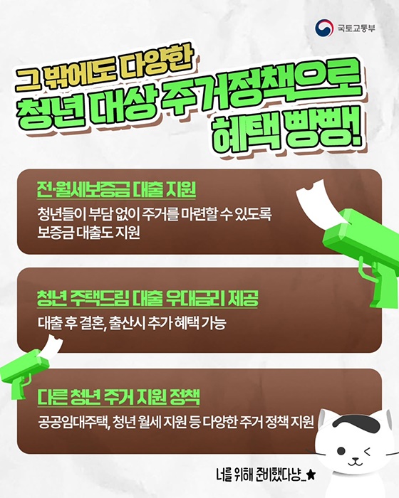 • 다양한 청년 주거 지원 정책: 공공임대주택, 청년 월세 지원 등